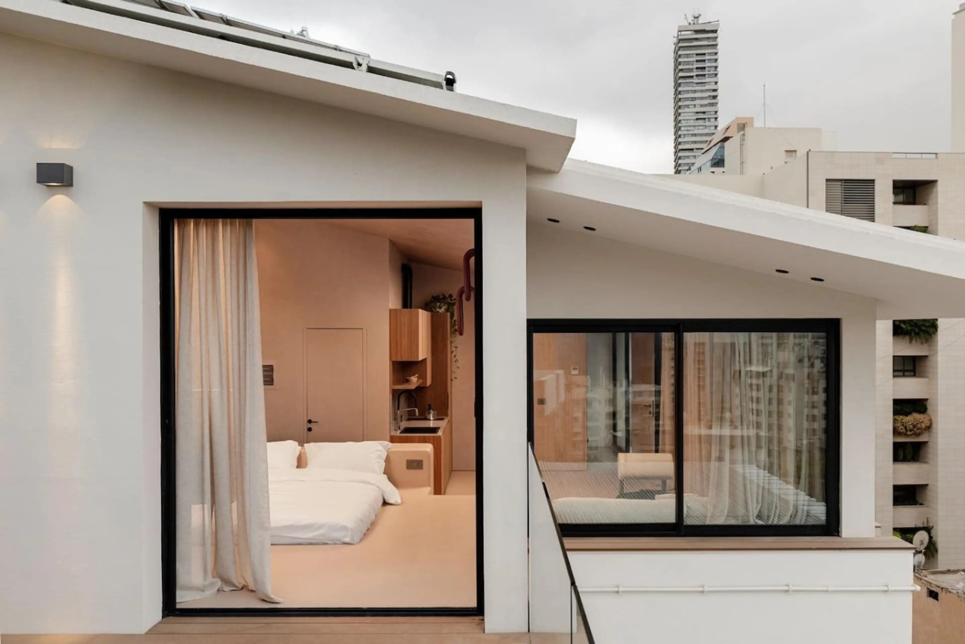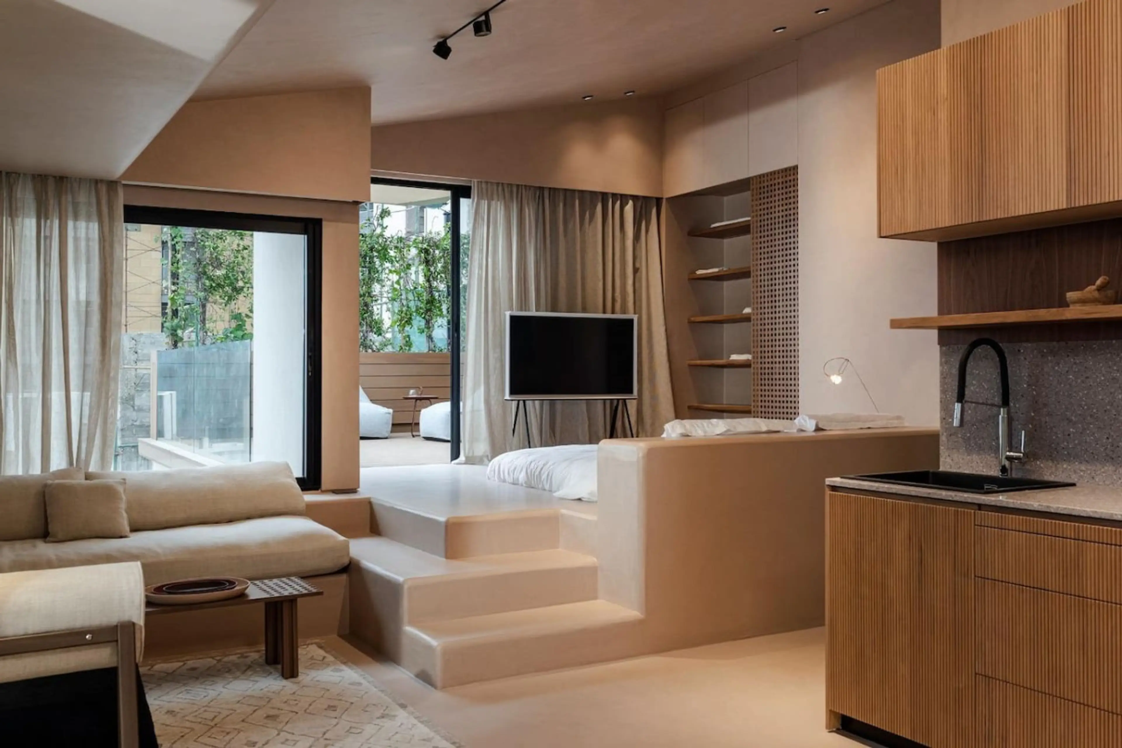 Architect’s Loft Rooftop A minimalist masterclass in the heart of Achrafieh. This rooftop studio features hand-applied micro-cement, fluted wood, and a unique elevated platform bed. Every detail is intentional. The space opens onto a private terrace, offering a rare outdoor escape above Beirut’s mos...
