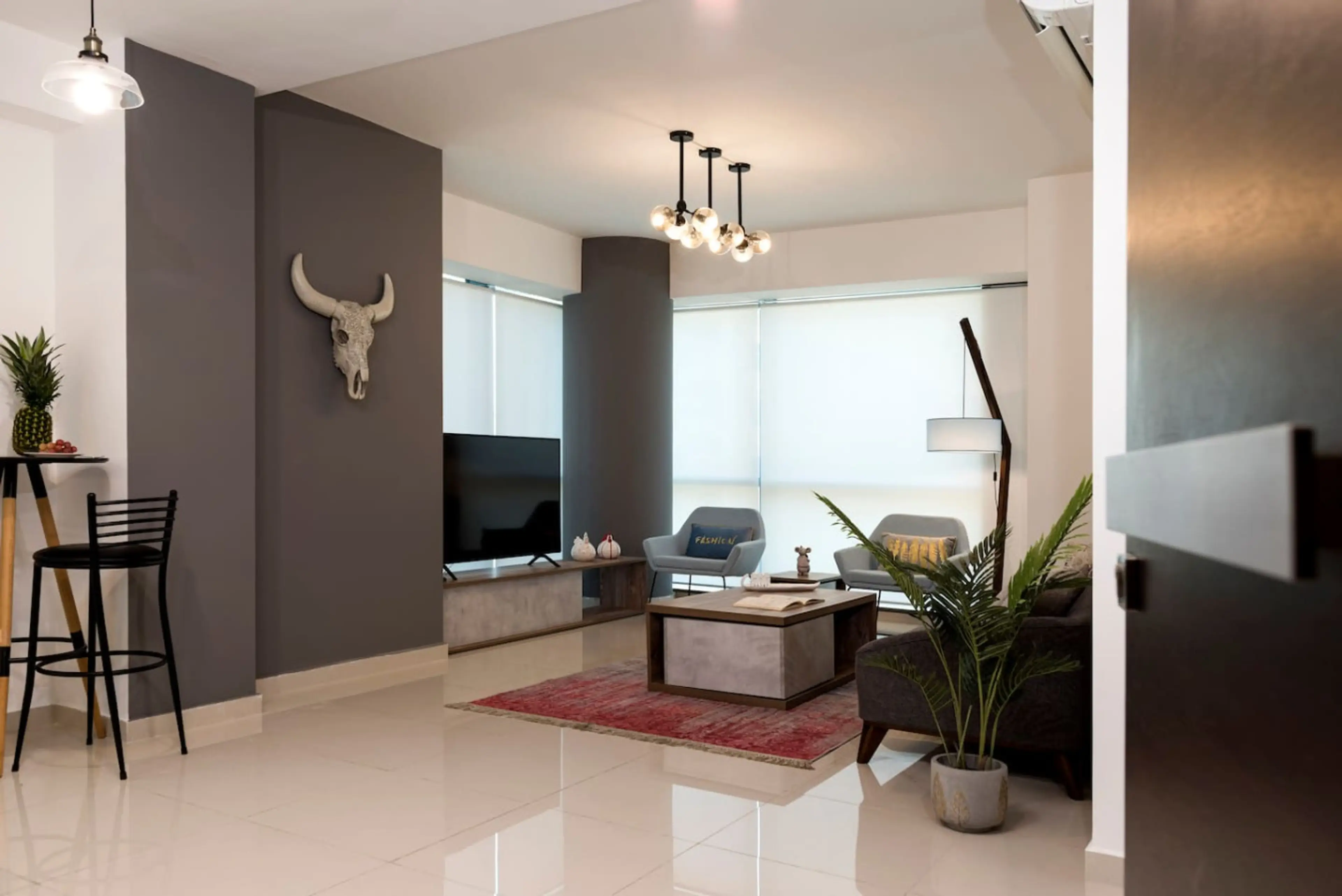 Opting for a clean and uncluttered energy, you’ll find this 1BD property equipped for the most discerning guests. The living space displays the works of local artisans to complement a contemporary and modern décor. Colors are serene and neutral and comfort is the standard. Our large windows flood th...
